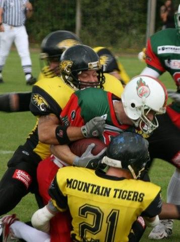Unter dem Strich drückt das Ergebnis, 0:44, nur aus, dass die Mountain Tigers wieder mal der Raffinesse eines langjährigen Regionalligisten mit Aufstiegsambitionen und den eigenen Unzulänglichkeiten erlag. Ferner darf auch nicht vergessen werden, dass eine der wichtigsten Positionen der Offense, die Centerposition, verletzungsbedingt neu besetzt werden musste, genau wie Runningback Marko Brinkmann der wahrscheinlich auch weitehin ausfallen wird.
