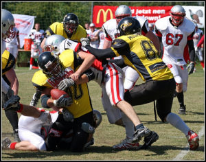 In der zweiten Hälfte brach, nach den vielen vergebenen Möglichkeiten und dem Ausgleich-Touchdown durch die Gäste von der Spree, die gesamte Mannschafts-leistung in sich zusammen. Das Team, was von den Zuschauern in der ersten Halbzeit noch laut angefeuert wurde, schien in der Pause geblieben zu sein. Kein Antrieb nach vorn, kaum Schutz nach hinten, so holte man Cottbus wieder ins Spielgeschehen und öffnete der Niederlage Tür und Tor.
