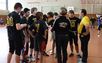 Gleich im ersten Spiel trafen die beiden Wernigeröder Mannschaften aufeinander. Konnten am Anfang die Tigers noch mithalten, so machte sich doch im Laufe des Spiels der teilweise erhebliche Altersunterschied bemerkbar. Die Banditz gewannen das Spiel sicher mit 38:6.
