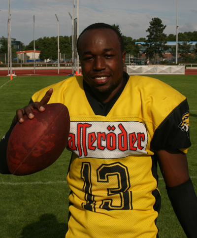 Bryant: Nach meinem Maschinenbau-Studium an der Central State University in Ohio habe ich gerade meine erste Saison in der CIFL beendet und konnte mich unter den Top 7 aller Widereceiver-Statistiken wiederfinden. Das ist schon eine besondere Leistung für mich.