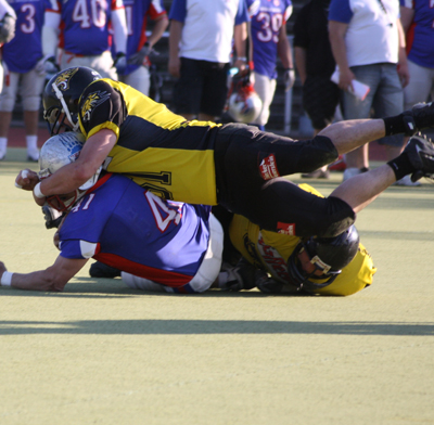 Die Gegner nutzten diese für sich aus und mit zwei aufeinander folgenden Touchdowns beendeten sie dann das zweite Viertel. Damit war der Halbzeitstand 17 zu 00.