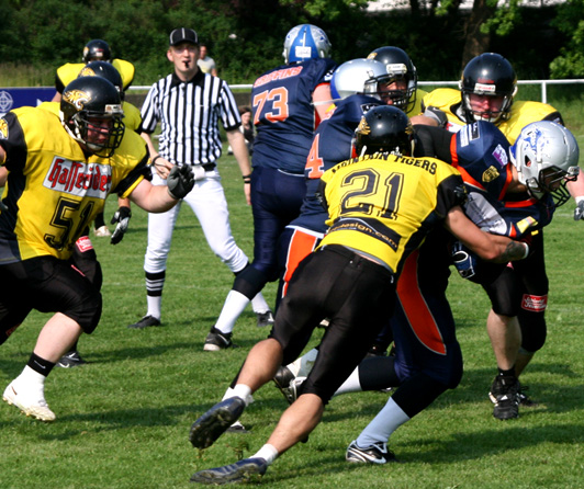 Hierzu muss man sagen, dass sowohl die Defense der Griffins als auch die Defense der Tigers das Spielgeschehen bestimmten. Gegen Ende des dritten Quarters wurde es für die Tigers noch einmal richtig eng. Die Rostock Griffins kamen in Fieldgoal Position.