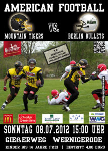 Am kommenden Sonntag treten die Wernigerode Mountain Tigers ein letztes Mal in dieser Saison vor eigenem Publikum an. Zu Gast werden die Berlin Bullets sein, die zur Zeit auf Rang 5 der Tabelle rangieren und erst kürzlich ihren ersten Sieg der Saison feiern durften.